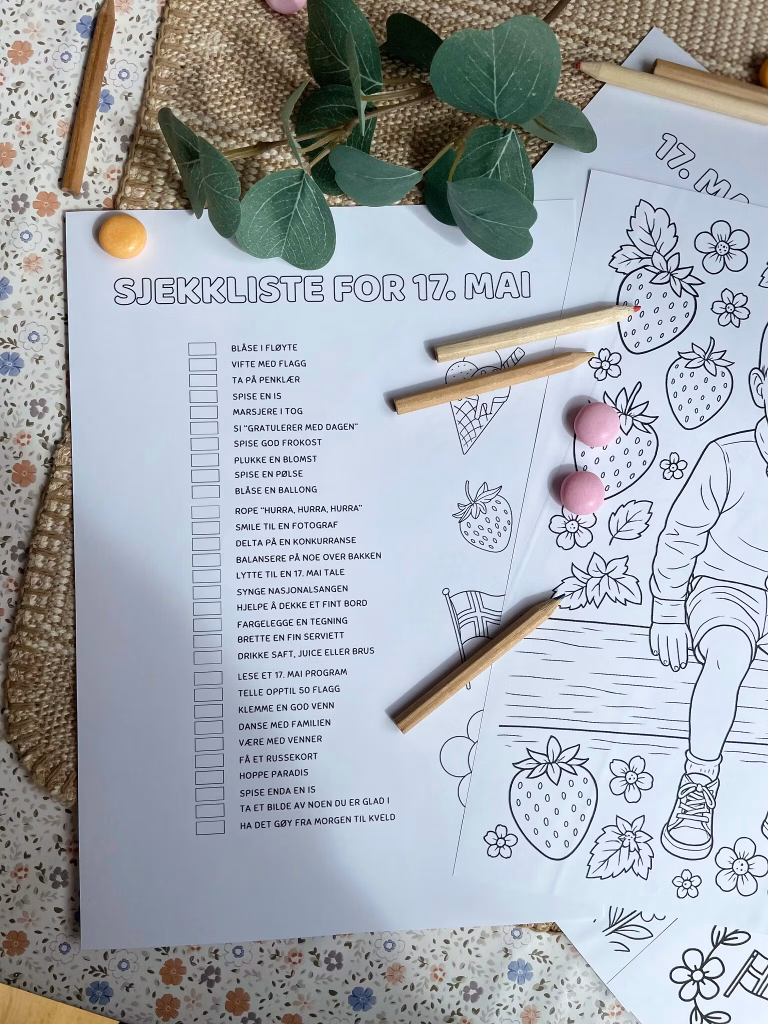 Et gratis hefte som er beregnet for barn i barnehage, barneskole og på SFO. Heftet inkluderer flere sider med fargelegging, to ulike kryssord samt en sjekkliste full av gøye aktiviteter man kan gjøre på 17. mai. Heftet lastes ned uten kostnad og printes fra vanlig printer på vanlig papir.